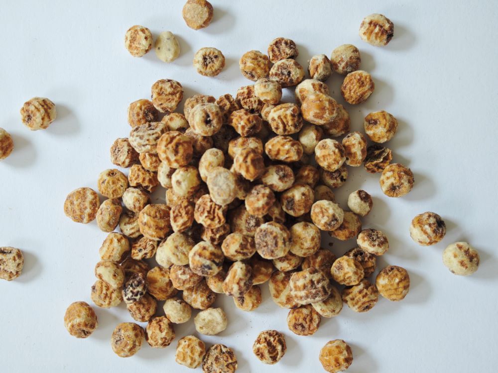 Vlastne to nie sú oriešky, ale cibuľky šáchoru jedlého. Takto vysušené a očistené majú delikátnu sladkú chuť a sú bohaté na výživné látky - antioxidanty, probiotiká, vitamíny a minerály. Prospievajú srdcovo-cievnemu a žalúdočno-črevnému systému. Sú vhodné na priamu konzumáciu, do kaší alebo dezertov.